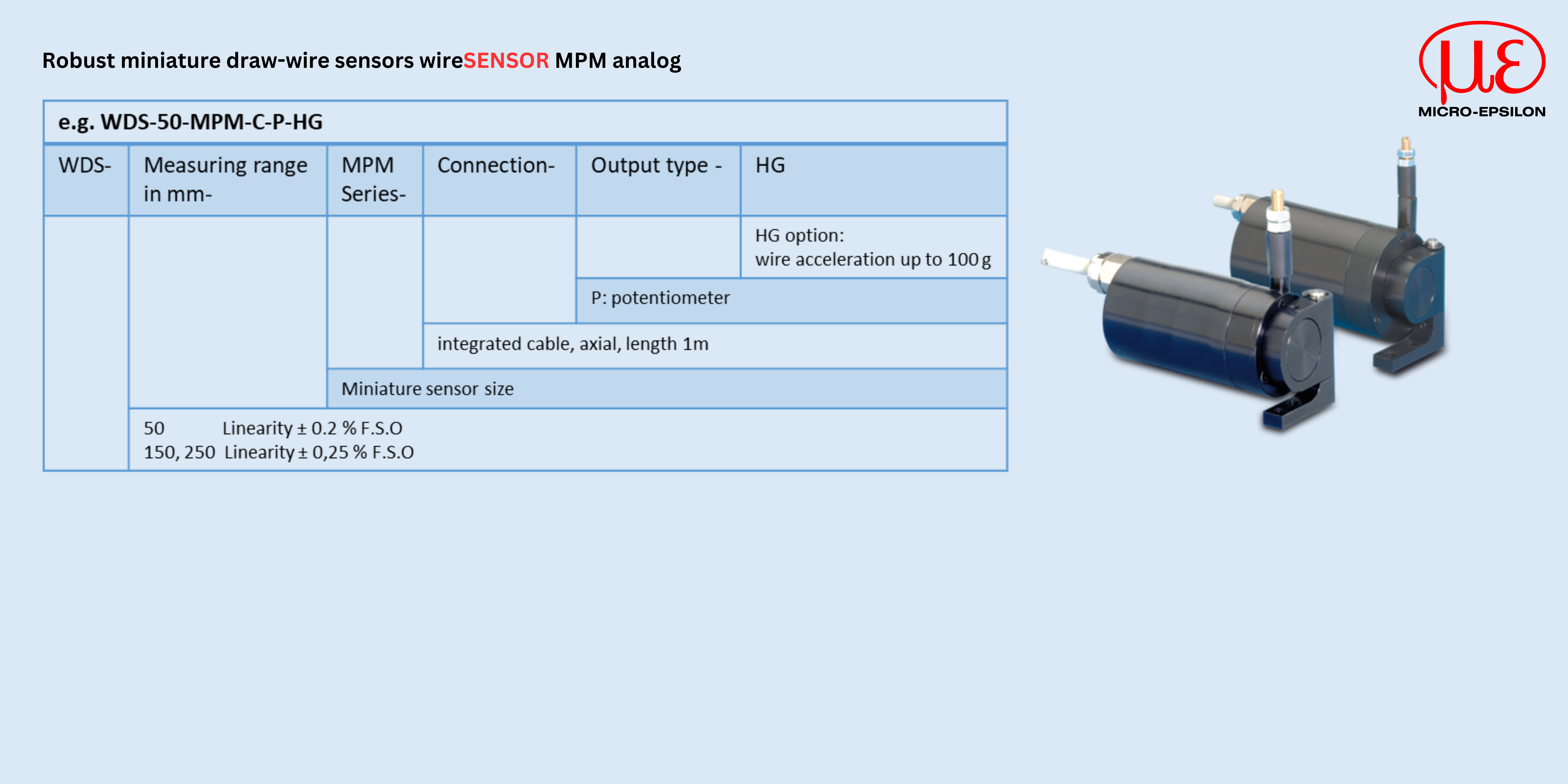 MPM draw-wire sensors combine miniaturized components and high-resolution precision hybrid potentiometers. They are preferably used in applications characterized by fast movements, short distances and confined spaces.