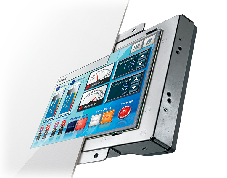 Design-conscious HMI. Rear-Mount Model with Flat Mounting in the GP4000 Series lineupGP4000R Series can fit in with any equipment design because its bezel cannot be seen on a control panel. Flat mounting has the benefit of preventing the accumulation of dust and mold, and even allows the display to be used in medical equipment, food manufacturing equipment and other devices used in environments where hygiene is important. |