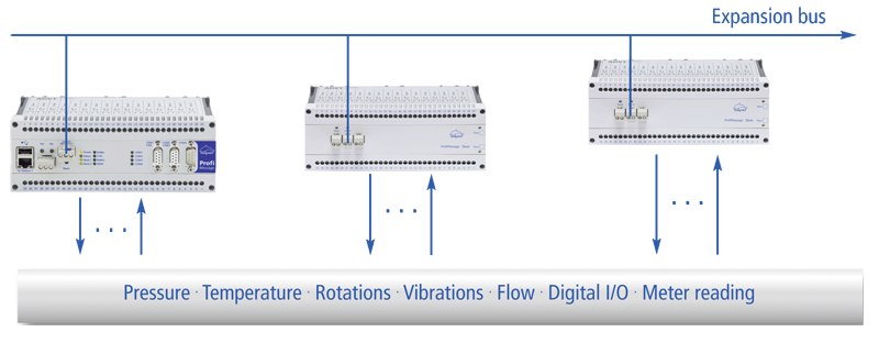 Data exchange between master and slaves takes place via a real time expansion bus using robust dual-wire technology. Slave devices can be decentrally located and managed from a single master device.