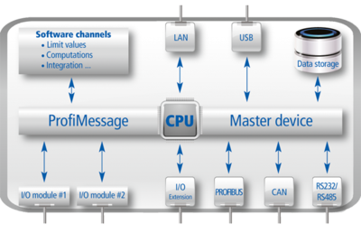 ProfiSignal software offers a diverse range of field bus interfaces. A master device is equipped with two PROFIBUS DP